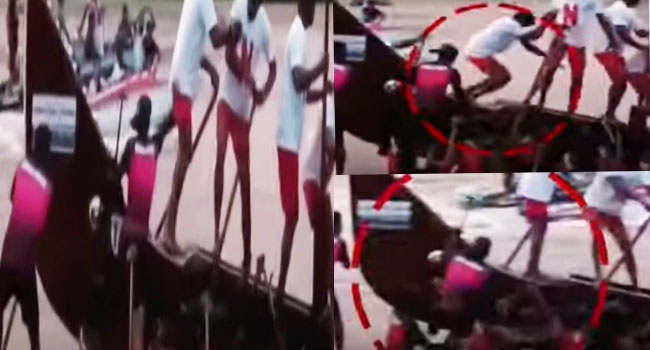 ഇന്നലെ വൈകുന്നേരമാണ് മാന്നാർ ജലോത്സവം നടന്നത്. ആദ്യം മുന്നിലുണ്ടായിരുന്നത് നിരണം ചുണ്ടനായിരുന്നു. ഇടയ്ക്ക് രണ്ടാമതുണ്ടായിരുന്ന ചെറുതന ചുണ്ടന്റെ മുൻഭാഗത്തേക്ക് നിരണം ചുണ്ടന്റെ മുൻഭാഗം വന്നിടിച്ചു. ഇതേത്തുടർന്ന് നിരണം ചുണ്ടൻ മുന്നോട്ട് നീങ്ങാതെ മറ്റ് വള്ളത്തിൽ ഇടിച്ചു നിന്നു. ഇതോടെ പോലീസ് ക്ലബ്ബ് അംഗം ചെറുതന ചുണ്ടന്റെ അമരക്കാനെ വെള്ളത്തിലേക്ക് തള്ളിയിടുകയായിരുന്നു.