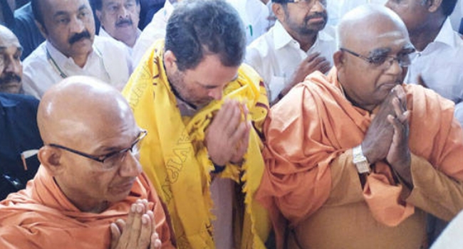 സന്യാസിമാരുമായി കൂടിക്കാഴ്ച നടത്തിയ രാഹുല് 10 മിനിറ്റിലേറെ മഠത്തില് ചെലവഴിച്ചു.ആദ്യമായാണ് രാഹുല് ശിവഗിരി മഠം സന്ദര്ശിക്കുന്നത്.ശിവഗിരിയിലെ പ്രാര്ത്ഥനാ ചടങ്ങിലും പങ്കു ചേര്ന്ന് രാഹുല്.
