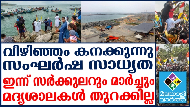 വരാന് കാത്ത് കേന്ദ്രസേന... വിഴിഞ്ഞം സമരം കടുപ്പിക്കുന്നു; തുറമുഖ കവാടത്തിലേയ്ക്ക് ഇന്ന് ബഹുജന മാര്ച്ച്; ഇന്നും ബിഷപ്പിന്റെ സര്ക്കുലര്; വിഴിഞ്ഞത്ത് സംഘര്ഷ സാധ്യതയെന്ന് കളക്ടര്; തിരുവനന്തപുരത്തെ മദ്യശാലകള് തുറക്കില്ല