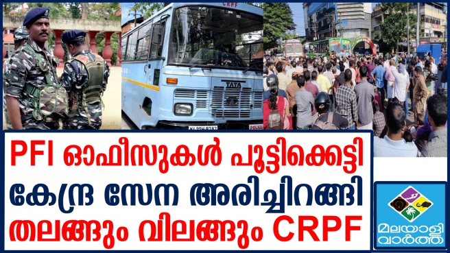 സംസ്ഥാനത്ത് വൻ സുരക്ഷ.... PFI ഓഫീസുകൾ പൂട്ടിക്കെട്ടി.... കേന്ദ്ര സേന അരിച്ചിറങ്ങി.... തലങ്ങും വിലങ്ങും CRPF