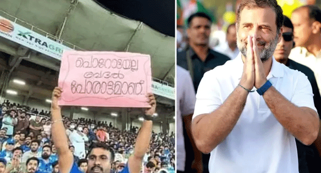 ''ആരാധകരെ ശാന്തരാകുവിന്'' നാണംകെട്ട് നാറി രാഹുൽ! പാർട്ടി പ്രവർത്തകരുടെ വമ്പൻ സിനിമ കോമഡി ഷോ ഇതാ... ‘പൊറോട്ടയല്ല ബദല്.. പോരാട്ടമാണ്’; ജോഡോ യാത്രയെ പരിഹസിച്ചുള്ള പോസ്റ്റർ ഗ്രീന്ഫീല്ഡ് സ്റ്റേഡിയത്തിലും