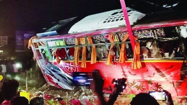 അതേസമയം, അമിത വേഗത്തിലെത്തിയ ടൂറിസ്റ്റ് ബസാണ് അപകടം ഉണ്ടാക്കിയതെന്ന് കെഎസ്ആര്ടിസി ബസ് ജീവനക്കാര് പറയുന്നു. കെഎസ്ആര്ടിസിയുടെ പിന്നിലേക്ക് ഇടിച്ചുകയറിയ ശേഷം ടൂറിസ്റ്റ് ബസ് മറിയുകയായിരുന്നു. ടൂറിസ്റ്റ് ബസിലുണ്ടായിരുന്ന അഞ്ചു വിദ്യാര്ഥികളും ഒരു അധ്യാപകനും മരിച്ചു. മൂന്നുപേര് കെഎസ്ആര്ടിസി ബസിലെ യാത്രക്കാരാണ്.