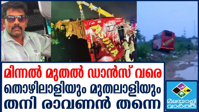 അസുരന് ബസിന്റെ മുതലാളിയും തൊഴിലാളിയും ഒപ്പം തന്നെ. ഇതോടെ അപകടമുണ്ടാക്കിയ ബസിന്റെ ഉടമ അരുണ് അറസ്റ്റിലായി. പ്രേരണക്കുറ്റം ചുമത്തിയാണ് ഇയാളെ പൊലീസ് അറസ്റ്റ് ചെയ്തത്. അപകടത്തില്പ്പെട്ട ബസ് മൂന്നു മാസത്തിനിടെ 19 തവണ വേഗ പരിധി ലംഘിച്ചുവെന്നാണ് പൊലീസ് കണ്ടെത്തല്. വേഗത കൂടിയെന്ന അലര്ട് കൃത്യമായി കിട്ടിയിട്ടും ഉടമ അരുണ് അവഗണിച്ചു.