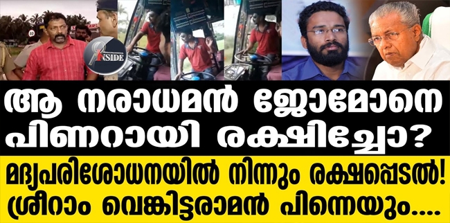 ഇയാളെ പോലീസ് രക്ഷിച്ചുവെന്ന വാർത്ത പുറത്തു വന്നതിന് പിന്നാലെയാണ് പോലീസ് സാഹസികമായി പിടികൂടിയെന്ന വാർത്ത പുറത്തായത്. . രക്തത്തിലുള്ള മദ്യത്തിൻ്റെ അളവ് മാറാനുള്ള സമയമാണ് ഇയാൾക്ക് നൽകിയതെന്നാണ് കേരളം വിശ്വസിക്കുന്നത്.ഇതേ കളി തന്നെയാണ് ശ്രീറാം വെങ്കിട്ടരാമൻ്റെ കാര്യത്തിലും സി പി എമ്മും പിണറായി സർക്കാരും ചെയ്തത്.ശ്രീറാമിൻ്റെ രക്ത പരിശോധനയിൽ അദ്ദേഹം മദ്യപിച്ചിട്ടില്ലെന്ന് മനസിലാക്കിയതോടെ കേസിൽ നിന്നും രക്ഷപ്പെടാൻ വഴിയൊരുങ്ങി. ക്യത്യസമയത്തിനുള്ളിൽ രക്ത പരിശോധന നടത്തണമെന്ന കാര്യം നിർബന്ധമാണ്. ഇത്തരത്തിൽ ചെയ്യാതിരുന്നാൽ മദ്യപിച്ചവർ കേസിൽ നിന്ന് ഊരും. മദ്യപിച്ചുണ്ടാക്കുന്ന അപകടവും മദ്യപിക്കാതെ ഉണ്ടാകുന്ന അപകടവും രണ്ടും രണ്ടാണ്. അതു കൊണ്ടു തന്നെ ജോമോനെ രക്ഷിച്ചെന്ന് പറയുന്നതാവും ശരി.മദ്യപിക്കാതെ അപകടമുണ്ടാക്കിയാൽ അത് മനപൂർവമല്ലാത്ത നരഹത്യയാണ്.