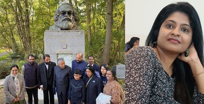 'കമലേച്ചിയും വീണേച്ചിയും കൊച്ചുമോനും അടങ്ങുന്ന ഫാമിലി പാക്കേജ് ടൂർ ഖേറളത്തിൻ്റെ സമഗ്ര വികസനത്തിനും നോർവീജിയൻ പഠന നിലവാരത്തിലേയ്ക്ക് നമ്മുടെ കുഞ്ഞുങ്ങളെ കൈപിടിച്ചുയർത്താനുമാണെന്ന് നമ്മൾ മനസ്സിലാക്കണം...' മുഖ്യമന്ത്രിയുടെ വിദേശ യാത്രയെ പരിഹസിച്ച് അഞ്ജു പാർവതി പ്രഭീഷ്
