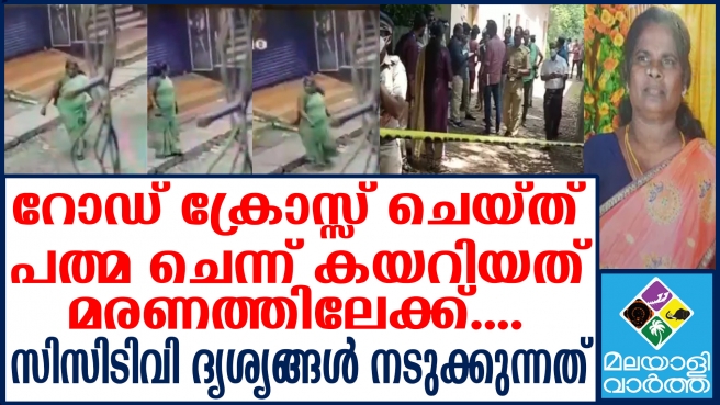 റോഡരികിലൂടെ നടന്നുവന്ന പത്മ ക്രോസ് ചെയ്ത് ചെന്ന് കയറിയത് മരണത്തിലേക്ക്.... ഇലന്തൂരിൽ കൊല്ലപ്പെട്ട രണ്ട് സ്ത്രീകളിൽ ഒരാളായ പത്മയുടെ അവസാന നിമിഷത്തെ സിസിടിവി ദൃശ്യങ്ങൾ പുറത്തു വന്നിരിക്കുകയാണ്.... പച്ച സാരിയുടുത്ത് ബാഗും തൂക്കി പത്മ ഒരു റോഡരിയിലൂടെ നടന്ന് ക്രോസ് ചെയ്ത് ഷാഫിയുടെ ഹോട്ടലിലേക്ക് നടന്നു കയറി പോകുന്ന ദൃശ്യങ്ങളാണ് സിസിടിവിയിൽ പതിഞ്ഞിരിക്കുന്നത്. കഴിഞ്ഞമാസം 26ആം തീയതി നടന്ന സംഭവത്തിന്റെ സിസിടിവി ദൃശ്യങ്ങളാണ് പുറത്ത് വന്നിരിക്കുന്നത്. അതിനിർണായകമായ ദൃശ്യങ്ങളാണ് ഇത്.