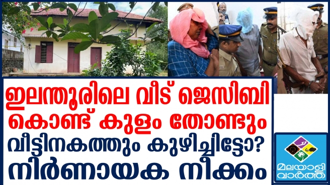 പ്രേതാലയ ഭൂമി... ഇലന്തൂരിലെ വീട്ടുവളപ്പില് ജെസിബി ഉപയോഗിച്ച് കുഴിച്ച് പരിശോധന നടത്താന് തീരുമാനം; പലരേയും കാണാനില്ലെന്ന വ്യാപക പരാതിയും ധാരാളം പേര് ഇവിടെ വന്നുപോയിട്ടുള്ളതും കാരണം പോലീസ് നിര്ണായക നീക്കത്തിലേക്ക്