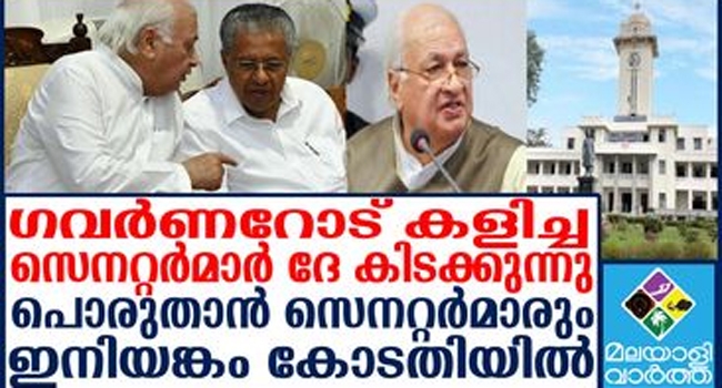 ഗവര്ണര്ക്ക് ഒരു വാക്കേയുള്ളൂ. പറഞ്ഞാല് പറഞ്ഞത് നടപ്പിലാക്കിയിരിക്കും. സെനറ്റര്മാരെ വച്ച് കളിച്ച കേരള സര്വകലാശാലയ്ക്ക് വലിയ പണിയാണ് കിട്ടിയത്. കളിക്കാന് കൂട്ടുനിന്ന സെനറ്റ് അംഗങ്ങള് വെട്ടിലാകുകയും ചെയ്തു.