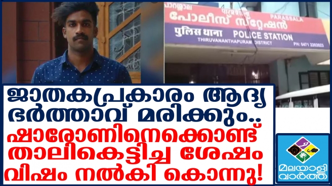 ജാതകപ്രകാരം ആദ്യ ഭർത്താവ് മരിക്കും.. ഷാരോണിനെക്കൊണ്ട് താലികെട്ടിച്ച ശേഷം വിഷം നൽകി കൊന്നു!