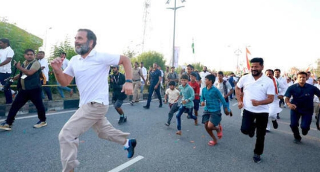 കേരളത്തിലെ യാത്രയ്ക്ക് ഇടയിലെന്ന പോലെ തെലങ്കാനയിലും ഇടയ്ക്കിടെ രാഹുല് ചില കുസൃതികള് ഒപ്പിക്കുന്നു. മുതിര്ന്ന നേതാക്കളെയും, സുരക്ഷാ ഉദ്യോഗസ്ഥരെയും ഒരുപോലെ കുഴയ്ക്കുന്നതാവും ഇവ. അതിവേഗ നടത്തം പെട്ടെന്ന് ഗിയര് മാറ്റി ഓട്ടത്തിലേക്ക് വഴിമാറുന്നതാണ് ഇതിലൊന്ന്.