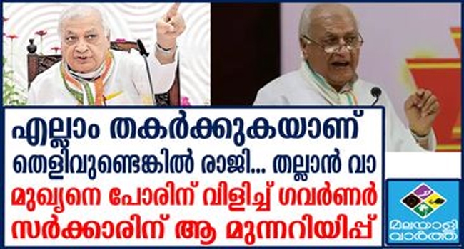 മാത്രമല്ല, തനിക്ക് മുഖ്യമന്ത്രിയെ അറിയാമെന്നും മുഖ്യമന്ത്രിക്ക് എന്തെങ്കിലും പറയാനുണ്ടെങ്കിൽ തന്നോട് പറയട്ടേ എന്നും ഗവർണർ തുറന്നടിച്ചു . താൻ എന്തെങ്കിലും നിയമം തെറ്റിച്ചെങ്കിൽ രാഷ്ട്രപതിയെ സമീപിക്കാമെന്നും ഗവർണർ വ്യക്തമാക്കി. സർക്കാരിലെ ചിലർ രാജ്ഭവനെ നിയന്ത്രിക്കാൻ ശ്രമിക്കുകയാണ്. താൻ നിയമിച്ചവർക്ക് തന്നെ വിമർശിക്കാൻ അധികാരമില്ലെന്നും ഗവർണർ പറഞ്ഞു.