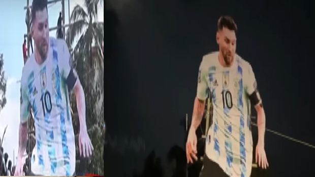 അതോടൊപ്പം തന്നെ സ്ഥാപിക്കുന്നതിനിടെ തന്നെ മുറിഞ്ഞ് വീണ കൂറ്റൻ കട്ടൗട്ട് മണിക്കൂറുകൾക്കുള്ളിലാണ് ആരാധകർ പുനഃസ്ഥാപിച്ചത്. മുണ്ടയിലെ റോഡരികിൽ അതേ സ്ഥലത്ത് തന്നെ കട്ടൗട്ട് ഇപ്പോൾ തല ഉയർത്തി നിൽക്കുന്ന കാഴ്ചയാണ് കാണുവാൻ സാധിക്കുന്നത്. ഇന്ത്യയിലെ തന്നെ ഏറ്റവും വലിയ മെസി കട്ടൗട്ട് എന്നാണ് ആരാധകരുടെ അവകാശവാദം. 65 അടി വലിപ്പമുള്ള കട്ടൗട്ട് ദിവസങ്ങളുടെ പരിശ്രമത്തിനൊടുവിലാണ് പൂർത്തിയാക്കിയിരിക്കുന്നത്.