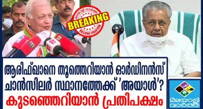 ഗവർണറെ ചാൻസിലർ സ്ഥാനത്തുനിന്ന് മാറ്റാൻ ഓർഡിനൻസ് വന്നിരിക്കുകയാണ്. ക്യാബിനറ്റ് യോഗത്തിലാണ് ഇത്തരത്തിലുള്ള തീരുമാനമെടുത്തിരിക്കുന്നത്. പക്ഷേ തീരുമാനം നടപ്പിലാകണമെങ്കിൽ ഗവർണറുടെ ഒപ്പ് വേണം എന്നതാണ് ഏറെ ശ്രദ്ധേയമായ കാര്യം. എന്നാൽ ഈ ബില്ല് എതിർക്കും എന്ന ഒരു നിലപാട് തുടക്കത്തിൽ തന്നെ സ്വീകരിച്ചിരിക്കുകയാണ് പ്രതിപക്ഷം. ഓർഡിനൻസ് നടപ്പാക്കാൻ ഗവർണർ ഒപ്പിടണം എന്നതാണ് ഏറെ ശ്രദ്ധേയമായ മറ്റൊരു കാര്യം.