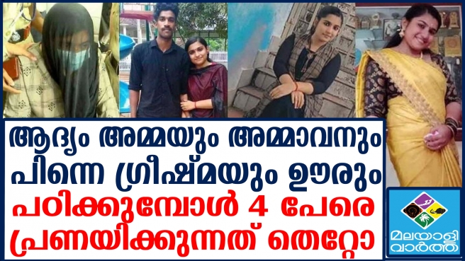 പ്രണയിക്കുന്നത് തെറ്റാണോവെന്ന ഗ്രീഷ്മയുടെ ചോദ്യത്തിന് മുമ്പില് അന്വേഷണ സംഘം പതറി. അതേസമയം കൊല്ലപ്പെട്ട ഷാരോണും ഗ്രീഷ്മയും തമ്മില് പ്രണയത്തിലായിരുന്നുവെന്ന കാര്യം അറിയില്ലായിരുന്നുവെന്ന് വ്യക്തമാക്കി യുവതിയുടെ അമ്മയും അമ്മാവനും ഹൈക്കോടതിയെ സമീപിച്ചു.