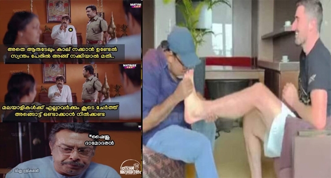 കാല് നക്കാൻ ഉണ്ടെങ്കിൽ സ്വന്തം പേരിൽ നക്കിയാൽ പോരെ? വിദേശ താരത്തിന്റെ കാലിൽ ഉമ്മവെച്ച കമന്റേറ്റർ ഷൈജു ദാമോദരനെതിരെ ട്രോൾ പൂരം
