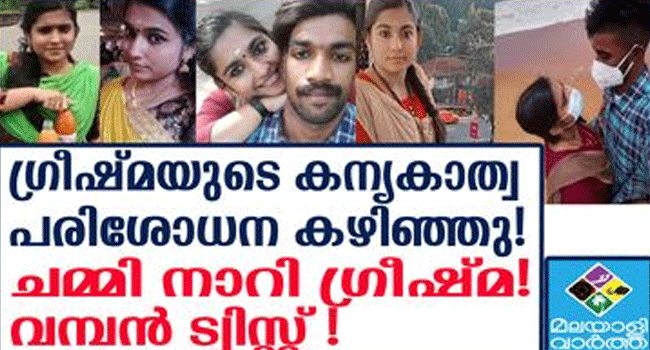 ഗ്രീഷ്മയെ കന്യകാത്വ പരിശോധനയ്ക്ക് വിധേയമാക്കി!ചമ്മി നാറി ഗ്രീഷ്മ! വമ്പൻ ട്വിസ്റ്റ്!പരിശോധന കഴിഞ്ഞപ്പോൾ ഗ്രീഷ്മ ഞെട്ടി! അന്വേഷണ സംഘം പുതിയ ഘട്ടത്തിലേക്ക്: ഷാരോൺ കേസിൽ അതിവേഗ കുറ്റപത്രം സമർപ്പിക്കാൻ പോലീസ്