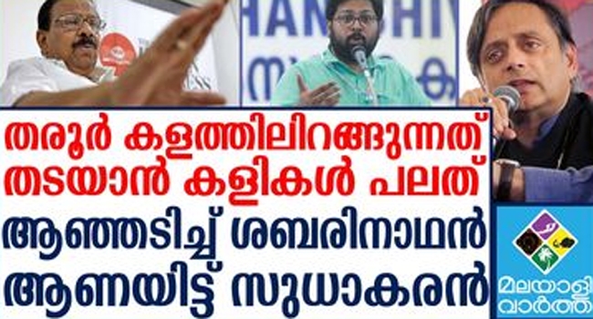 അതേസമയം കോഴിക്കോട് യൂത്ത് കോണ്ഗ്രസ് നടത്താനിരുന്ന പരിപാടിയില് നിന്ന് ശശി തരൂരിനെ ഒഴിവാക്കിയ നടപടിയെ വിമര്ശിച്ച് മുന് എംഎല്എയും യൂത്ത് കോണ്?ഗ്രസ് സംസ്ഥാന വൈസ് പ്രസിഡന്റുമായ കെ.എസ്. ശബരീനാഥന് രംഗത്ത്. മലബാറിന്റെ മണ്ണില് കോണ്ഗ്രസിന്റെ മതേതര സ്വഭാവം ഉയര്ത്തികാട്ടുവാന് ഈ പരിപാടിയിലൂചെ ശശി തരൂരിന് കഴിയുമായിരുന്നു. എന്നാല് ഈ പ്രോഗ്രാം മാറ്റാന് ചില കേന്ദ്രങ്ങളില് നിന്ന് നിര്ദേശം വന്നു എന്ന് മാധ്യമങ്ങളിലൂടെ അറിഞ്ഞെന്നും എന്തിനാണ് ഇത്തരത്തിലൊരു നടപടിയെന്നും ശബരീനാഥന് ഫേസ്ബുക്ക് കുറിപ്പിലൂടെ ചോദിച്ചു. എഐസിസി അധ്യക്ഷ തെരഞ്ഞെടുപ്പില് തരൂരിനെ പരസ്യമായി പിന്തുണച്ച നേതാവാണ് ശബരീനാഥന്.