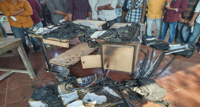 അതേസമയം പി.എസ്.സി പരീക്ഷയെഴുതാൻ വന്നവരുടെ ഏഴ് സ്മാർട്ട് ഫോണുകളും ബാഗുകളുമാണ് കത്തി നശിച്ചത്. പിന്നാലെ അഗ്നിശമന സേനയെത്തിയാണ് തീയണച്ചത്. സംഭവത്തിൽ അന്വേഷണം തുടരുകയാണെന്ന് പോലീസ് പറഞ്ഞു.