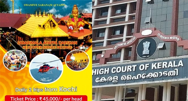 ശബരിമലയിൽ ഹെലികോപ്റ്റർ സർവീസ് വഴി വിഐപി ദർശന വാഗ്ദാനം; കേസ് ഹൈക്കോടതി ഇന്ന് വീണ്ടും പരിഗണിക്കും; പരസ്യം പിൻവലിച്ചെന്ന് കമ്പനി അഭിഭാഷകൻ