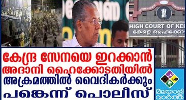 കല്ലും നെല്ലും തിരിയും... വിഴിഞ്ഞം പദ്ധതി നിര്മാണത്തിന് പൊലീസ് സംരക്ഷണം തേടി അദാനി ഗ്രൂപ്പ് നല്കിയ ഹര്ജി ഹൈക്കോടതി ഇന്ന് വീണ്ടും പരിഗണിക്കും; വിഴിഞ്ഞം സമരത്തില് നിലപാട് കടുപ്പിച്ച് മുഖ്യമന്ത്രി; അക്രമത്തില് വൈദികര്ക്കും പങ്കെന്ന് പൊലീസ്