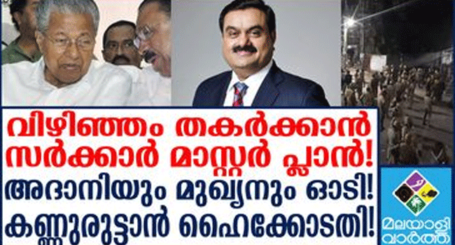 വിഴിഞ്ഞം തകർക്കാൻ സർക്കാർ മാസ്റ്റർ പ്ലാൻ! അദാനിയും മുഖ്യനും ഓടി! കണ്ണുരുട്ടാൻ ഹൈക്കോടതി!മുഖ്യനെ ഓടിക്കും! അദാനിയുടെ ഹർജി ഹൈക്കോടതി പരിഗണിക്കും ; അക്രമത്തിൽ വൈദികർക്കും പങ്കെന്ന് പൊലീസ്,സിപിഎം യോഗം ഇന്ന്