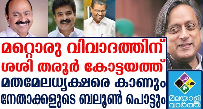 മലബാറില് കരുത്ത് തെളിയിച്ച ശശി തരൂര് കോണ്ഗ്രസിന്റെ തട്ടകമായ കോട്ടയത്ത് എത്തുകയാണ്. ഇതോടെ ബലൂണിനോട് ഉപമിച്ച പ്രതിപക്ഷ നേതാവ് വിഡി സതീശന്റെ വാക്കുകള് പൊന്നാവുകയാണ്. ബലൂണ്പോലെയുള്ള നേതാക്കള് പൊട്ടും. സംസ്ഥാന കോണ്ഗ്രസിലെ ആഭ്യന്തര പ്രശ്നങ്ങള് തുടരുന്നതിനിടെ തിരുവനന്തപുരം എം പി ശശി തരൂര് ഇന്ന് കോട്ടയം ജില്ലയില് പര്യടനം നടത്തും.