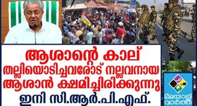 വിഴിഞ്ഞം സംഭവം സിനിമാകഥ പോലെയായി. പോലീസുകാരുടെ കാല് തല്ലിയൊടിച്ചവരെ നല്ലവനായ ആശാന് ക്ഷമിച്ചിരിക്കുന്നു എന്ന പ്രചരണമാണ് നടന്നത്. എന്നാല് ആശാന്റെ വക പണി മറുപണിയായി. പോലീസിന്റെ കാല് തല്ലിയൊടിച്ചവരെ നേരിടാനെത്തുന്നത് സാക്ഷാല് കേന്ദ്ര സേന. പോലീസിന്റെ കാല് തല്ലിയൊടിച്ചപോലെ അവരുടെ മെക്കിട്ട് കയറിയാല് വിവരമറിയും. രാജ്യസുരക്ഷയാണ് കളി മാറും. അങ്ങനെ താടിയുള്ള അപ്പനെ പേടിക്കുക തന്നെ ചെയ്യും.