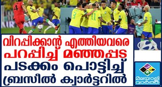 കൊറിയക്കാര് ശൂ... വിറപ്പിക്കാന് എത്തിയവരുടെ ആത്മവിശ്വാസത്തെ നേരിട്ട ബ്രസീല് ആരാധകരെ ആനന്ദത്തില് ആറാടിപ്പിച്ചു; ഇതിലും മനോഹര വിജയം സ്വപ്നത്തില് മാത്രം; കൊറിയക്കാരെ തലങ്ങും വിലങ്ങും തല്ലി ഒന്നിനെതിരെ നാല് ഗോളിന് വിജയം