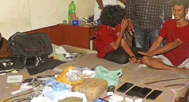 പ്രധാന പ്രതി രജീഷിനെയും 17 കാരനെയും മാത്രം സ്പോട്ട് അറസ്റ്റ് ചെയ്തു. 5 കിലോ കഞ്ചാവ് , രണ്ടു ഗ്രാം എംഡിഎംഎ , 2 പെല്ലറ്റ് ഗണ് , 1ലൈറ്റര് ഗണ് , 2 വെട്ടുകത്തി , 5 മൊബൈല് ഫോണ് എന്നിവ ഇവരില് നിന്ന് പിടികൂടിയിരുന്നു. തോക്കുകള് ലൈസന്സ് ആവശ്യമില്ലാത്ത എയര് പിസ്റ്റള് വിഭാഗത്തില്പ്പെട്ടവയാണ്.