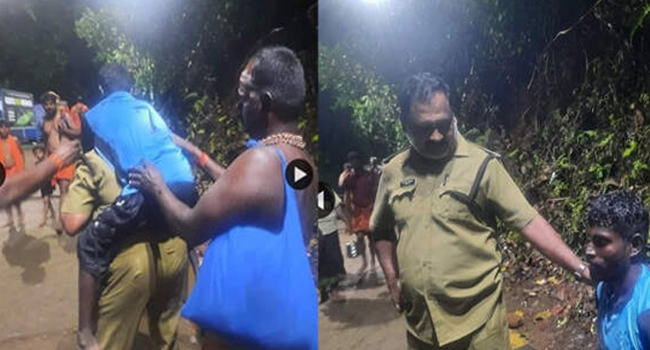 ശബരിമലയിലെത്തിയ കാലുവയ്യാത്ത അയ്യപ്പ ഭക്തനെ തോളിലേറ്റി; മരക്കൂട്ടത്തു നിന്ന് സന്നിധാനത്തേക്ക് തോളിൽ ചുമന്നെത്തിച്ച് വൈറലായി ഇടപ്പള്ളി ട്രാഫിക് സ്റ്റേഷനിലെ ഹോംഗാർഡ് ആർ.എസ്. ബിജുകുമാർ