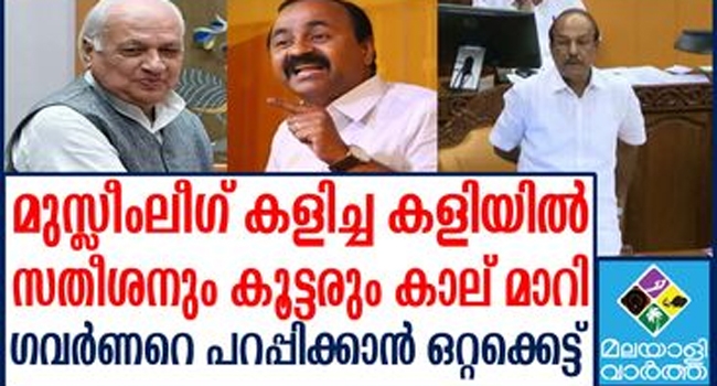 ഗവര്ണര് ആരിഫ് മുഹമ്മദ് ഖാന് മാനസിക പിന്തുണ നല്കിയിരുന്ന പ്രതിപക്ഷ നേതാവ് വിഡി സതീശന് അവസാനം കാലുമാറി. മുസ്ലീംലീഗിന്റെ ഭീഷണിയെ തുടര്ന്നാണ് ചാന്സലര് സ്ഥാനത്തു നിന്നു ഗവര്ണറെ നീക്കാനുള്ള ബില്ലിനു പിന്തുണ നല്കിയത്. കോണ്ഗ്രസ് പഴയ നിലപാട് തുടര്ന്നാല് മുസ്ലീം ലീഗ് സ്വന്തം നിലയില് ബില്ലിനെ അനുകൂലിക്കുമെന്നായി. അത് പ്രതിപക്ഷ ഐക്യത്തിന് കോട്ടം തട്ടും. അതോടെ സതീശന് മനം മാറി.