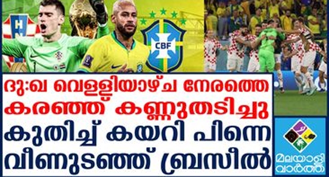 ഖത്തര് ലോകകപ്പില് വീണ്ടും സങ്കടത്തിന്റെ ദിനം. ബ്രസീല് ആരാധകരുടെ ചങ്ക് തകര്ന്നു പോയി. പെനല്റ്റി ഷൂട്ടൗട്ടിലേക്ക് നീണ്ട ആവേശപ്പോരാട്ടത്തില് ലോക ഒന്നാം നമ്പര് ടീമായ ബ്രസീലിനെ വീഴ്ത്തി ക്രൊയേഷ്യ തുടര്ച്ചയായ രണ്ടാം ലോകകപ്പ് സെമിയില്. ഷൂട്ടൗട്ടില് രണ്ടിനെതിരെ നാലു ഗോളുകള്ക്കാണ് ക്രൊയേഷ്യയുടെ വിജയം.