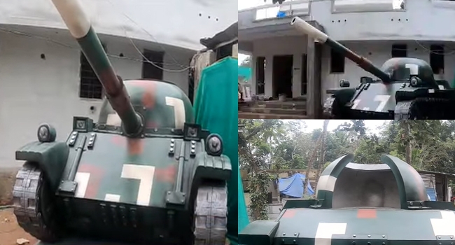 ഈ വീട്ടിന് മുന്നിലെ കിണര് ഒരു പട്ടാള ടാങ്കിന്റെ മോഡലിലാണ് നിര്മ്മിച്ചിരിക്കുന്നത്. ഒരു പട്ടാളക്കാരന്റെ വീടിന് അനുയോജ്യമായ ഒരു നിര്മ്മിതി വേണം എന്ന ആശയത്തിലാണ് ഇത്തരം ഒരു നിര്മ്മാണം എന്നാണ് വീട് നിര്മ്മിക്കുന്നവര് ഇതിനെക്കുറിച്ച് പറയുന്നത്. ഇരുപത്ത് ഏഴ് മാതൃകകള് പരിശോധിച്ചാണ് ഇത്തരം ഒരു നിര്മ്മാണം നടത്തിയത്.