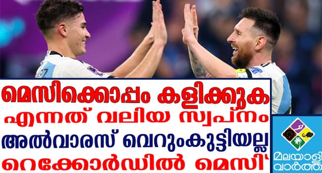 ഇപ്പോള് ഇരട്ട ഗോളടിച്ച ജൂലിയന് അല്വാരസാണ് താരം. മെസ്സിക്കൊപ്പം കളിക്കുക എന്നതാണ് തന്റെ ഏറ്റവും വലിയ സ്വപ്നം എന്നാണ് ജൂലിയന് അല്വാരസ് പറഞ്ഞിരുന്നത്. ഇപ്പോഴിതാ 2 ഗോളുകളോടെ തന്റെ ആരാധനാപാത്രത്തെ ഇരുപത്തിരണ്ടുകാരന് അല്വാരസ് സ്വപ്നസാഫല്യത്തിന് അടുത്തെത്തിച്ചിരിക്കുന്നു- അതിലൊന്ന് മെസ്സി ടച്ചുള്ള സുന്ദരമായ ഗോള് തന്നെ. ഇരട്ടഗോളുകളോടെ അല്വാരസും ഒരു ഗോളും 2 അസിസ്റ്റുമായി മെസ്സിയും മിന്നിത്തിളങ്ങിയ ദിനം ക്രൊയേഷ്യയെ 3-0നു തോല്പിച്ച് അര്ജന്റീന ലോകകപ്പ് ഫൈനലില് കടന്നു.