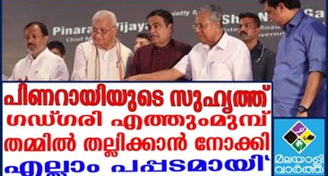 ബിജെപി നേതാവാണെങ്കിലും കേന്ദ്രമന്ത്രി നിതിന് ഗഡ്ഗരിയുമായി മുഖ്യമന്ത്രിക്ക് വലിയ അടുപ്പമാണ്. അതെല്ലാവര്ക്കുമറിയാം. അതിനാല് തന്നെ ഗഡ്ഗരി ഇന്നലെ പാര്ലമെന്റില് പറഞ്ഞത് വളച്ചൊടിച്ച് വാര്ത്തയാക്കി. അതിന് വൈകുംനേരം വരെയേ ആയുസുണ്ടായിരുന്നുള്ളൂ.