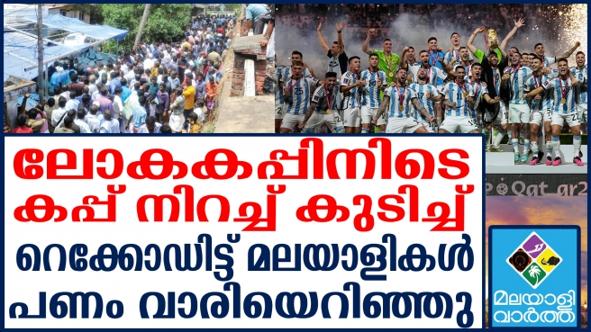 പിന്നല്ലാതെ ഇപ്പോഴില്ലെങ്കില്... ലോകകപ്പ് ആവേശത്തില് മലയാളികള് കുടിച്ച് തീര്ത്തു; അര്ജന്റീന ജയിച്ചതിനാല് സന്തോഷക്കുടി; തോറ്റിരുന്നെങ്കില് ദു:ഖക്കുടി; വില കൂട്ടിയിട്ടും മലയാളികള് കുടിച്ചത് 56 കോടിയുടെ മദ്യം; കപ്പ് നിറഞ്ഞപ്പോള് വിലകൂട്ടിയ സര്ക്കാരിന് ഇരട്ടി ലാഭം
