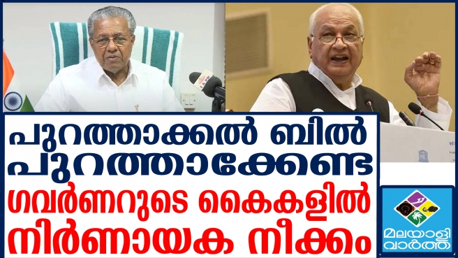 തന്നെ ബാധിക്കുന്ന വിഷയം ആയതിനാല് ഈ ബില്ലില് താന് തീരുമാനം എടുക്കില്ലെന്നും രാഷ്ട്രപതിക്കു വിടുമെന്നും ഗവര്ണര് മുന്പ് അറിയിച്ചിരുന്നു. എന്നാല് ബില് എത്തിയ ശേഷം പരിശോധിച്ചിട്ടു പറയാം എന്ന നിലപാടാണ് അദ്ദേഹം കഴിഞ്ഞ ദിവസം സ്വീകരിച്ചത്. ബില്ലുകള് രാഷ്ട്രപതിക്കു വിടുന്നതിനുള്ള സാധ്യതകളാണ് നിയമവിദഗ്ധരോട് ഗവര്ണര് ആരായുക.