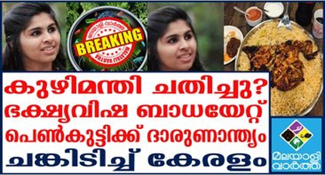 ഓൺലൈനായി കുഴിമന്തി വാങ്ങി കഴിച്ചു; ശാരീരിക അസ്വസ്ഥത വന്നു ഗുരുതരാവസ്ഥയിലായി; ഭക്ഷ്യവിഷ ബാധയേറ്റ് സംസ്ഥാനത്ത് വീണ്ടും മരണം; കാസർക്കാട് തലക്ലായിലെ അഞ്ജുശ്രീ പാർവ്വതിയാണ് മരിച്ചത്