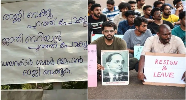 കോട്ടയത്തെ കെ.ആർ. നാരായണൻ നാഷണൽ ഫിലിം ഇൻസ്റ്റിറ്റ്യൂട്ട് ഡയറക്ടറുടെ ജാതിവിവേചനത്തിൽ പരാതിയുമായി സി.പി.എം. വർഗ ബഹുജന സംഘടനയായ പട്ടികജാതി ക്ഷേമസമിതിയും (പി.കെ.എസ്.) രംഗത്ത്.ഇതോടെ തിങ്കളാഴ്ച മുതൽ ജനുവരി 15 വരെ ഇൻസ്റ്റിറ്റ്യൂട്ട് അടച്ചിടാൻ ജില്ലാ കളക്ടർ നിർദേശം നൽകി. അതേസമയം, മുൻ നിശ്ചയിച്ച പരീക്ഷകൾക്ക് ഉത്തരവ് ബാധകമല്ല.