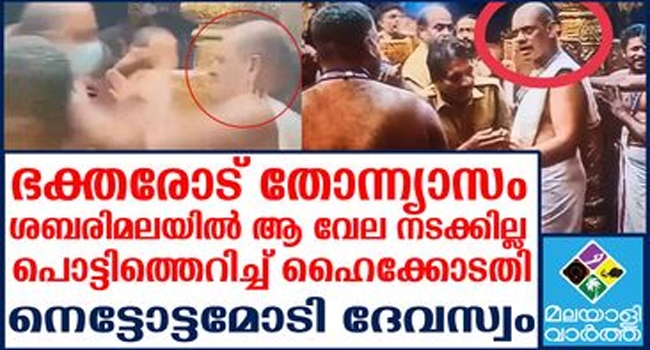 ഇതിനു പിന്നാലെയാണ് ഹൈക്കോടതി ഇടപെട്ടത്. ഉച്ച കഴിഞ്ഞ് മൂന്നിന് ദേവസ്വം ബെഞ്ചു പരിഗണിക്കുവാനിരിക്കുകയാണ്. ഈ അതിക്രമത്തിൽ ദേവസ്വം ബോർഡ് ജീവനക്കാരനെ ജോലിയിൽ നിന്നുമാറ്റി. മകരവിളക്ക് ദിവസമായിരുന്നു ഈ സംഭവം ഉണ്ടായത് . സോപാനത്ത് ആദ്യത്തെ വരിയിൽ നിന്ന് ദർശനം നടത്തിയവരെ ഇയാൾ പിടിച്ചുതള്ളുകയായിരുന്നു .