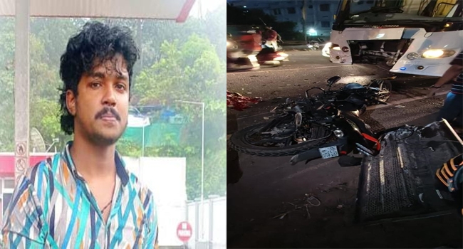 ടൂറിസ്റ്റ് ബസും ബൈക്കും കൂട്ടിയിടിച്ച് ബൈക്ക് യാത്രക്കാരൻ മരിച്ചു; മൃതദേഹം കോട്ടയം ജില്ലാ ജനറൽ ആശുപത്രി മോർച്ചറി യിൽ