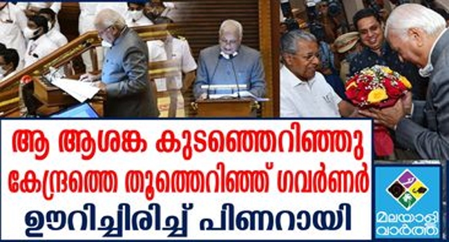 നിയമസഭയിൽ എല്ലാ ആശങ്കകൾക്കും വിവാദങ്ങൾക്കും അവസാനം. ഗവർണർ നയപ്രഖ്യാപന പ്രസംഗം അവതരിപ്പിച്ചു കഴിഞ്ഞു. പ്രസംഗം അവതരിപ്പിച്ചു കഴിഞ്ഞ ഗവർണർ പുറത്തുപോയി. ഇന്നത്തെ നയ പ്രഖ്യാപന പ്രസംഗത്തിൽ ഏറെ ശ്രദ്ധേയമായ ഒരു കാര്യം എന്ന് പറയുന്നത് കേന്ദ്രത്തെ വിമർശിച്ചു കൊണ്ടുള്ള ചില കാര്യങ്ങൾ നയപ്രഖ്യാപന പ്രസംഗത്തിൽ ഉൾപ്പെടുത്തിയിരുന്നു. അത് ഗവർണർ വായിക്കുമോ ഇല്ലയോ എന്നത് വളരെ സംശയ നിഴലിലായിരുന്നു. കേന്ദ്രത്തെ വിമർശിക്കുന്നത് ആയതുകൊണ്ട് അതിനെ വായിക്കാൻ ഗവർണർ തയ്യാറാകുമോ എന്നതായിരുന്നു എല്ലാവരുടെയും ആശങ്ക.