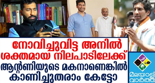 പുതിയ തലമുറയുടെ താല്പര്യങ്ങളില് ഇടപെടാന് താനാരാണെന്ന നിസ്സഹായതയാണ് അടുപ്പമുള്ളവരോട് അദ്ദേഹം പങ്കുവച്ചത്. കോണ്ഗ്രസുകാര് അനിലിനെ വിലമതിച്ചിരുന്നത് എ.കെ.ആന്റണിയുടെ മകന് എന്ന നിലയില് തന്നെയാണ്. കെപിസിസി ഡിജിറ്റല് മീഡിയ കണ്വീനറായി മുല്ലപ്പള്ളി രാമചന്ദ്രന് അനിലിനെ നിയോഗിച്ചതിനു പിന്നിലും ആ പരിഗണനയുണ്ട്.