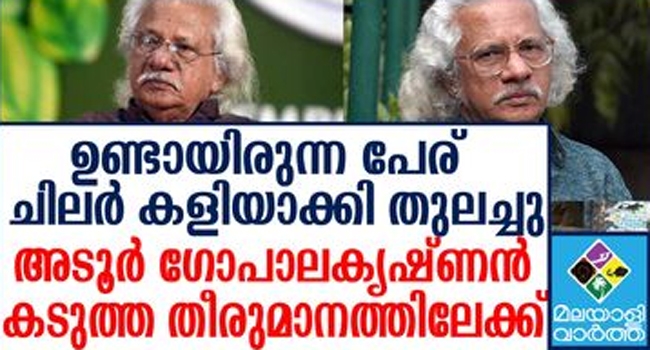 അടൂര് ഗോപാലകൃഷ്ണന് ലോകം അറിയപ്പെടുന്ന സംവിധായകനാണ്. എന്നാല് അടുത്തിടെ അടൂരിനെതിരെ കനത്ത വിമര്ശനമാണ് ഒരു കോണില് നിന്നുമുണ്ടായത്. അതില് അദ്ദേഹം തികച്ചും നിരാശനാണ്. ഇതോടെ കെ ആര് നാരായണന് ഫിലിം ഇന്സ്റ്റിറ്റ്യൂട്ട് ചെയര്മാന് സ്ഥാനം രാജി വയ്ക്കാനൊരുങ്ങിയിരിക്കുകയാണ് അടൂര് ഗോപാലകൃഷ്ണന്.