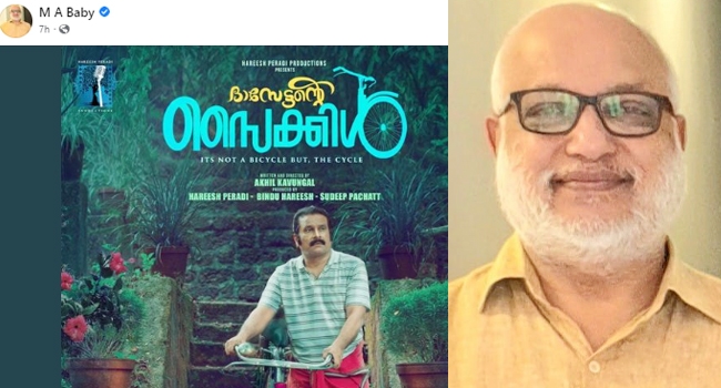 നടൻ ഹരീഷ് പേരടിയുടെ പുതിയ ചിത്രത്തിന്റെ പോസ്റ്റർ പങ്കുവെച്ച പോളിറ്റ് ബ്യൂറോ അംഗം എം.എ. ബേബിക്കെതിരേ വിമർശനം... പാർട്ടിയേയും നേതാക്കളേയും വിമർശിക്കുന്ന ഹരീഷ് പേരടിയുടെ പോസ്റ്റർ പങ്കുവെക്കുന്നത് ശരിയല്ലെന്നാണ് ഇടതുപക്ഷക്കാരായ സോഷ്യല് മീഡിയ ഉപയോക്താക്കളുടെ വിമർശനം..