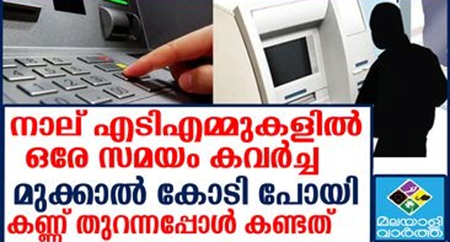 കൃത്യമായ ആസൂത്രണത്തോടെയാണ് നാലിടങ്ങളില് ഒരേ സമയം ഒരേ സ്വഭാവത്തില് കവര്ച്ച നടത്തിയത്. എടിഎം മെഷീനുകള്ക്കും സിസിടിവിക്കും തീയിട്ടതിനാല് സിസിടിവി ദൃശ്യങ്ങളും വിരലടയാളങ്ങളും കണ്ടെത്താനായില്ല.