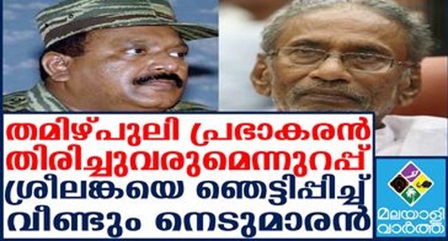 അപ്പോള് കൊന്നതാരെ... തമിഴ് പുലി പ്രഭാകരന് മരിച്ചെന്ന് ശ്രീലങ്കന് സേന ആണയിടുമ്പോഴും മരിച്ചിട്ടില്ലെന്ന വെളിപ്പെടുത്തലുമായി നെടുമാരന്; പ്രഭാകരന് പൂര്ണ ആരോഗ്യവാനാണെന്നും ഉടന് പൊതുരംഗത്ത് പ്രത്യക്ഷപ്പെടുമെന്നും നെടുമാരന്; വെളിപ്പെടുത്തല് നടത്തുന്നത് പ്രഭാകരന്റെ അറിവോടുകൂടി