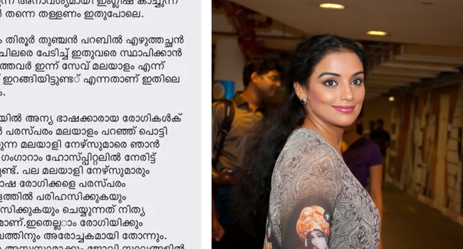 രണ്ട് ദിവസം മുമ്പാണ് ദില്ലിയിലെ ജി.ബി.പന്ത് ആശുപത്രി ജോലി സമയത്ത് നഴ്സുമാർ മലയാളം സംസാരിക്കുന്നത് വിലക്കി കൊണ്ടുള്ള ഉത്തരവ് പുറപ്പെടുവിച്ചത്. ഇതിനെതിരെ വലിയ പ്രതിഷേധമുണ്ടായതോടെ സർക്കുലർ റദ്ദാക്കുകയും ചെയ്തു. ഈ വിഷയത്തിൽ നിലപാട് വ്യക്തമാക്കി നടി ശ്വേത മേനോനും രംഗത്തുവന്നിരുന്നു. വിവാദ സർക്കുലർ രാജ്യത്തിന്റെ അടിസ്ഥാന മൂല്യങ്ങൾക്ക് വിരുദ്ധമാണെന്നാണ് ശ്വേത വ്യക്തമാക്കിയത്. എന്നാൽ ശ്വേതയുടെ നിലപാടിനെതിരേ വിമർശനവുമായി വന്നയാൾക്ക് താരം നൽകിയ മറുപടിയാണ് ഇപ്പോൾ ശ്രദ്ധ നേടുന്നത്.