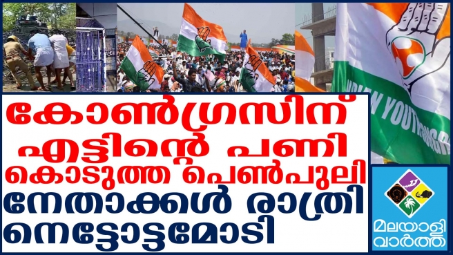 കോൺഗ്രസിന് എട്ടിന്റെ പണി കൊടുത്ത പെൺപുലി... നേതാക്കൾ രാത്രി നെട്ടോട്ടമോടി... എന്ത് വന്നാലും ഇനി വരത്തില്ലെന്ന്...