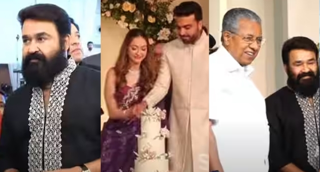 മുഖ്യമന്ത്രിയെ തേച്ചൊട്ടിച്ച് നടന് മോഹന്ലാല്;കല്യാണ റിസപ്ഷന് കറുപ്പണിഞ്ഞെത്തി ലാലേട്ടന്,മുഖ്യന്റെ കറുപ്പ് പേടിക്ക് ലാലേട്ടന്റെ വക മുട്ടന് പണി